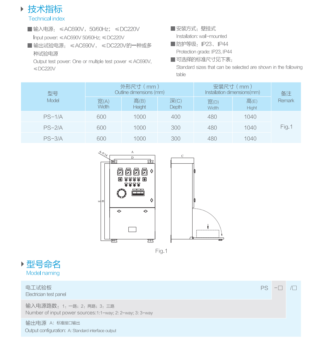 尺寸: 外形尺寸(寬高深)600mm×1000mm×400mm,安裝尺寸(寬高)480mm×1040mm 安裝方式: 壁掛式