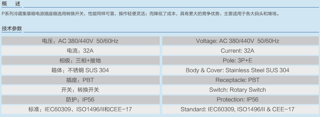 P型系列冷藏集裝箱電源插座箱下插式