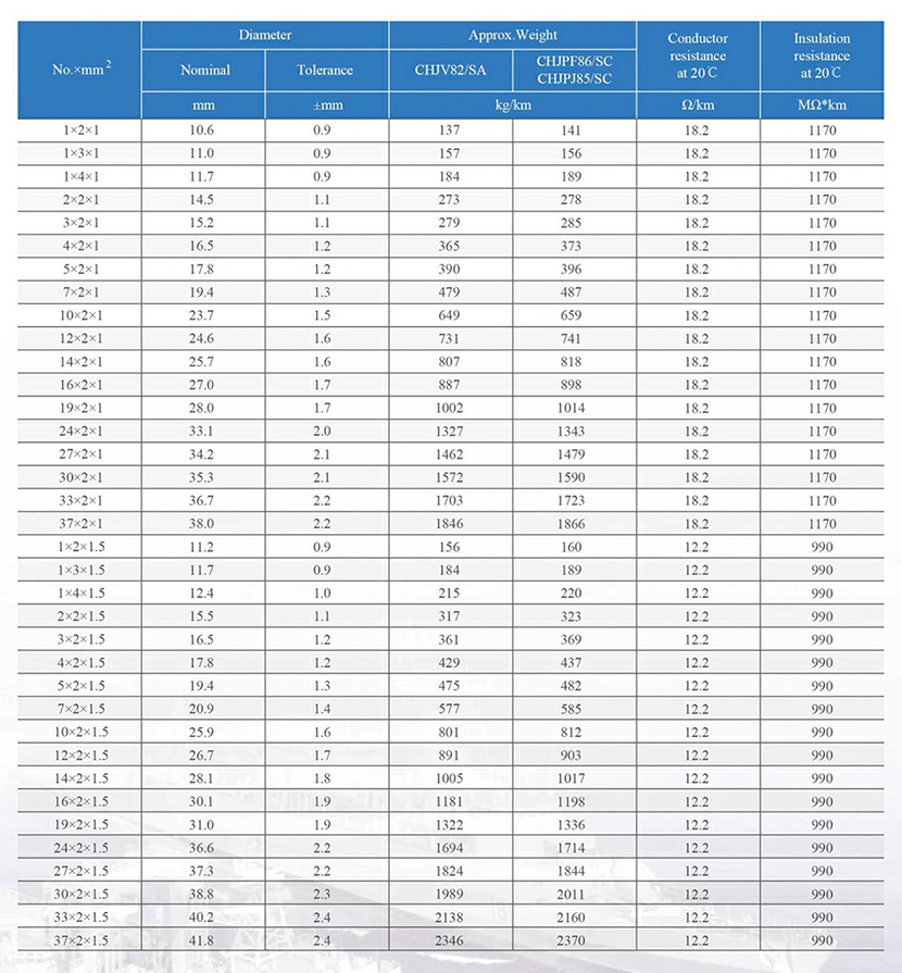 | 20℃時的導體電阻: | 18.2Ω/km | 20℃時的絕緣電阻: | 1170MΩ×km |