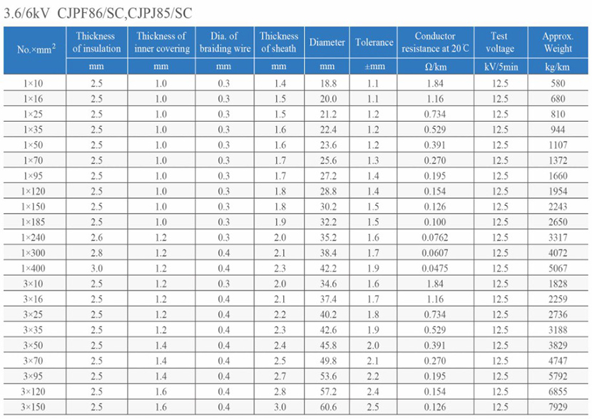 | 規定直徑公差: | ±2.0mm | 重量: | 3829kg/km |
