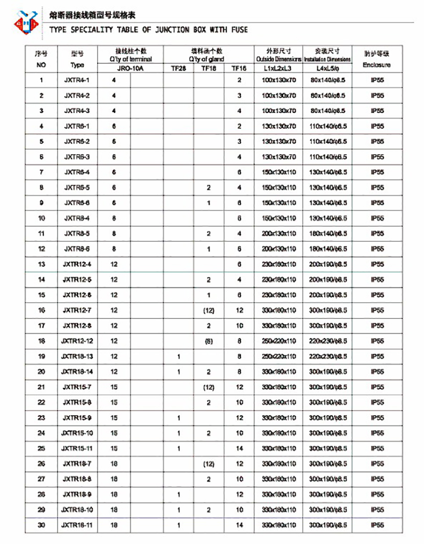 接線柱個數: 4 填料函個數: TF16/4