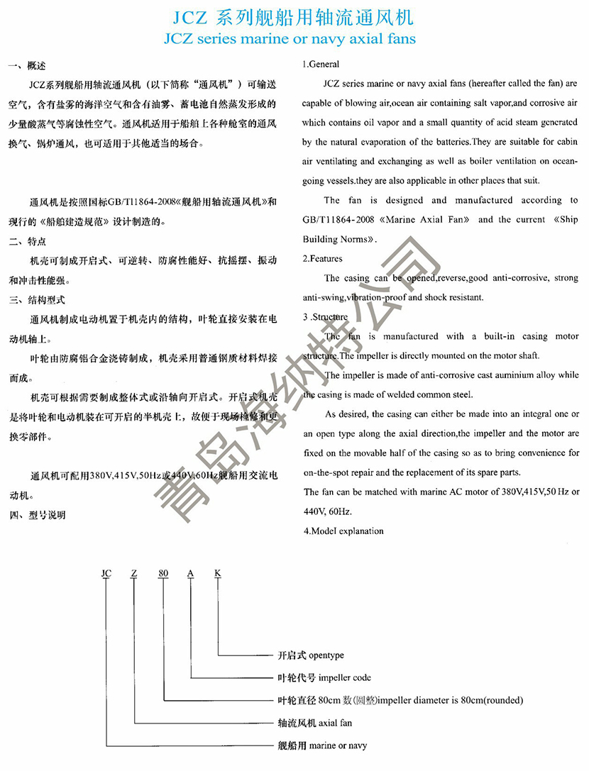 JCZ系列艦船用軸流通風機