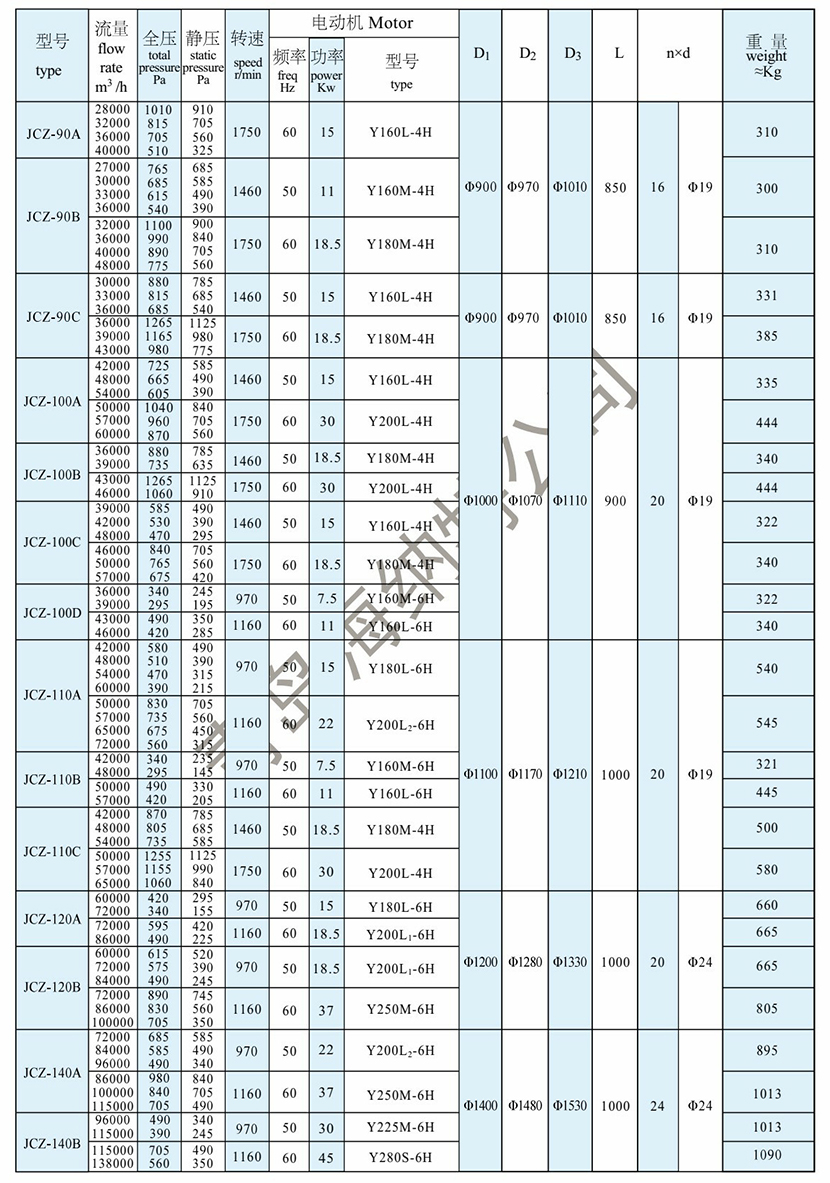 靜壓: 490Pa 電機頻率: 50Hz