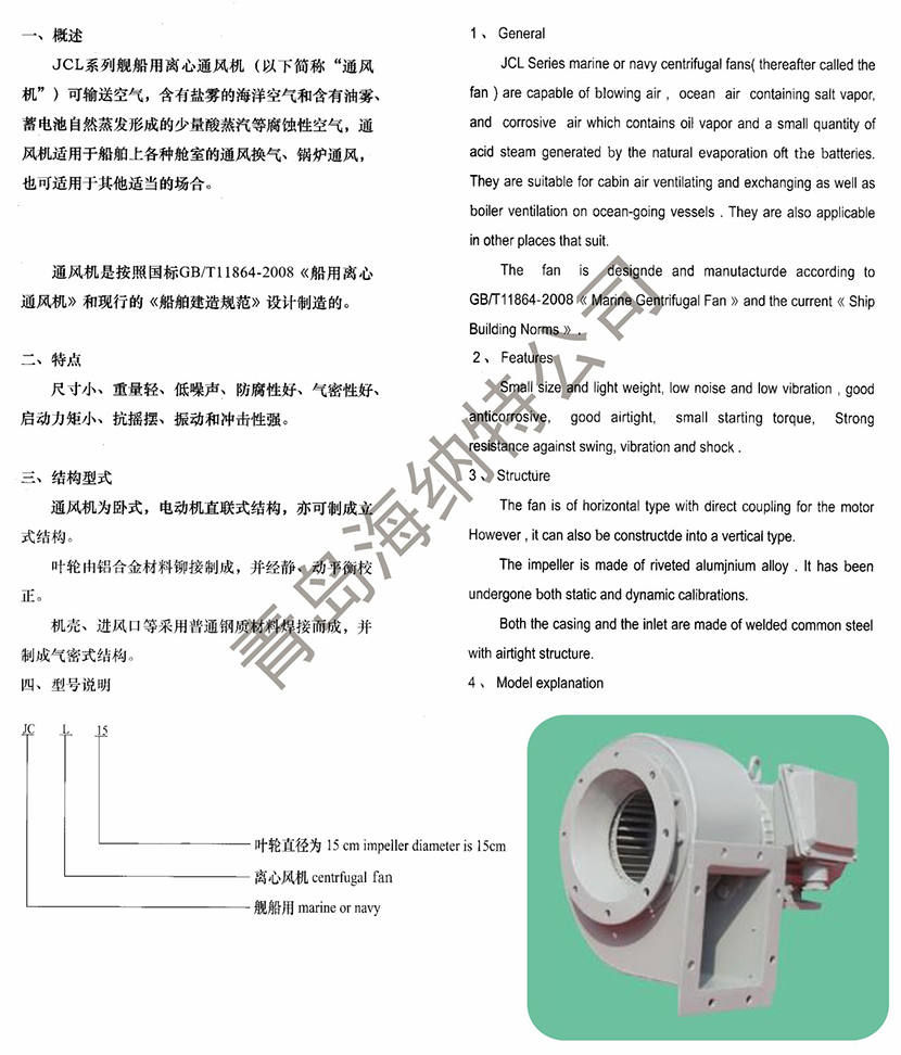 | JCL系列艦船用離心通風(fēng)機(jī) | |||