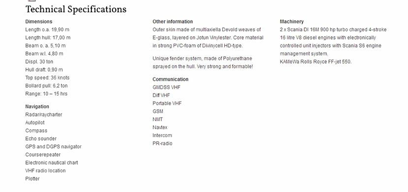 | 總長: | 19.90m | 航速: | 36kn |