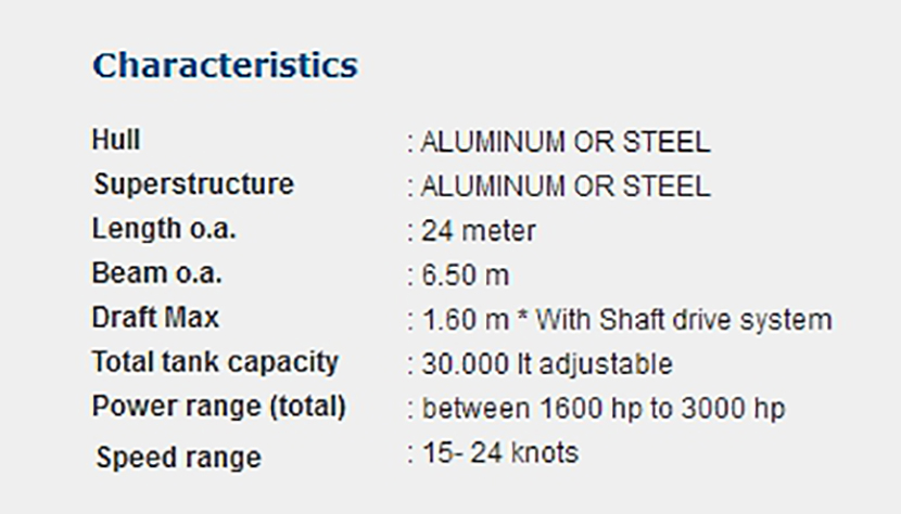 燃油容量: 30.000lt 發動機功率: 1600-3000hp