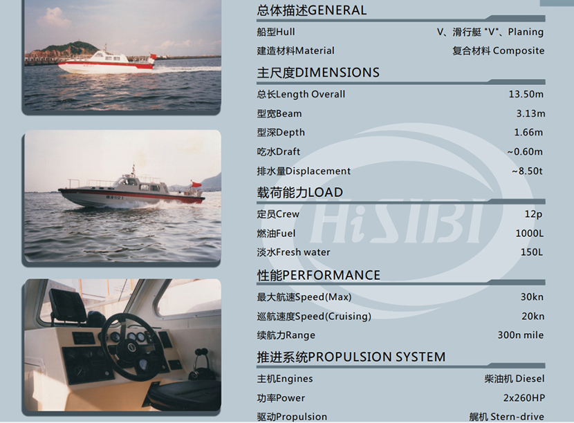 總長: 13.50m 航速: 20kn