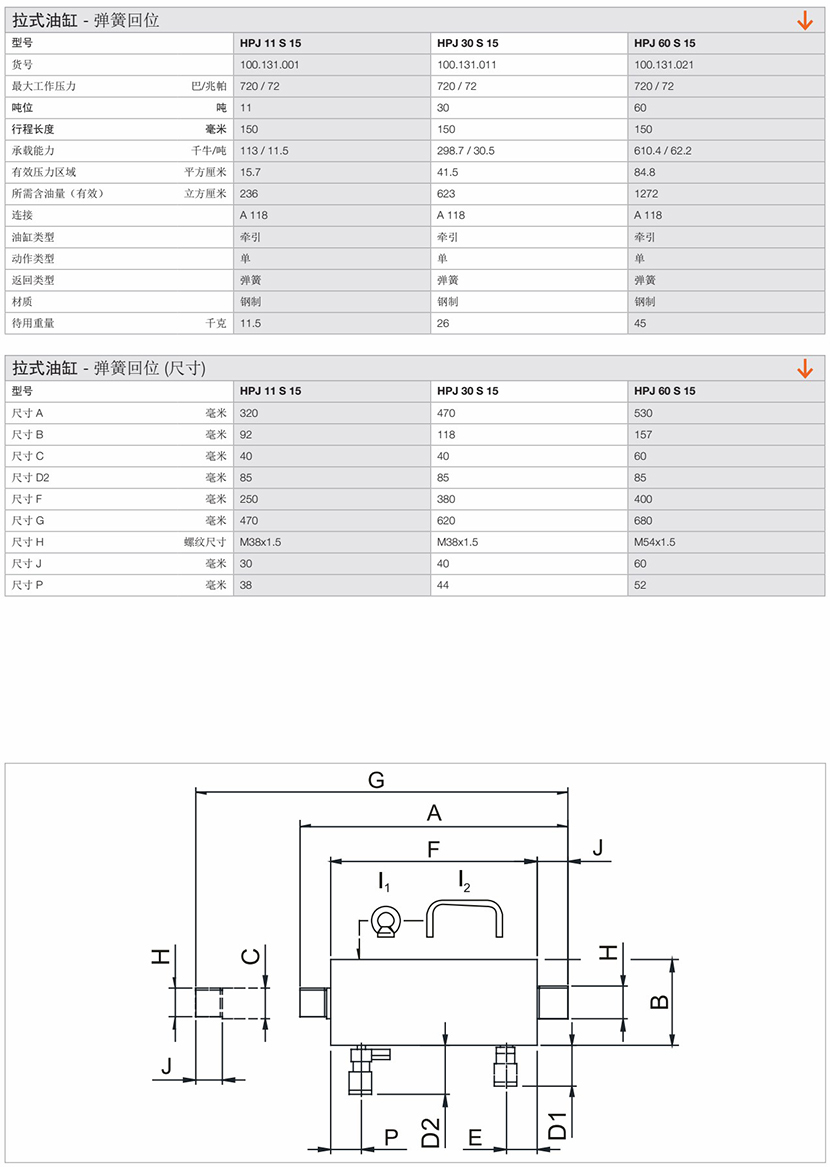 | 拉式彈簧回位油缸 | |||