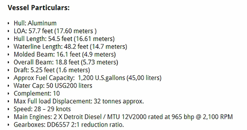 | 排水量: | 32t | 型寬: | 5.73m |