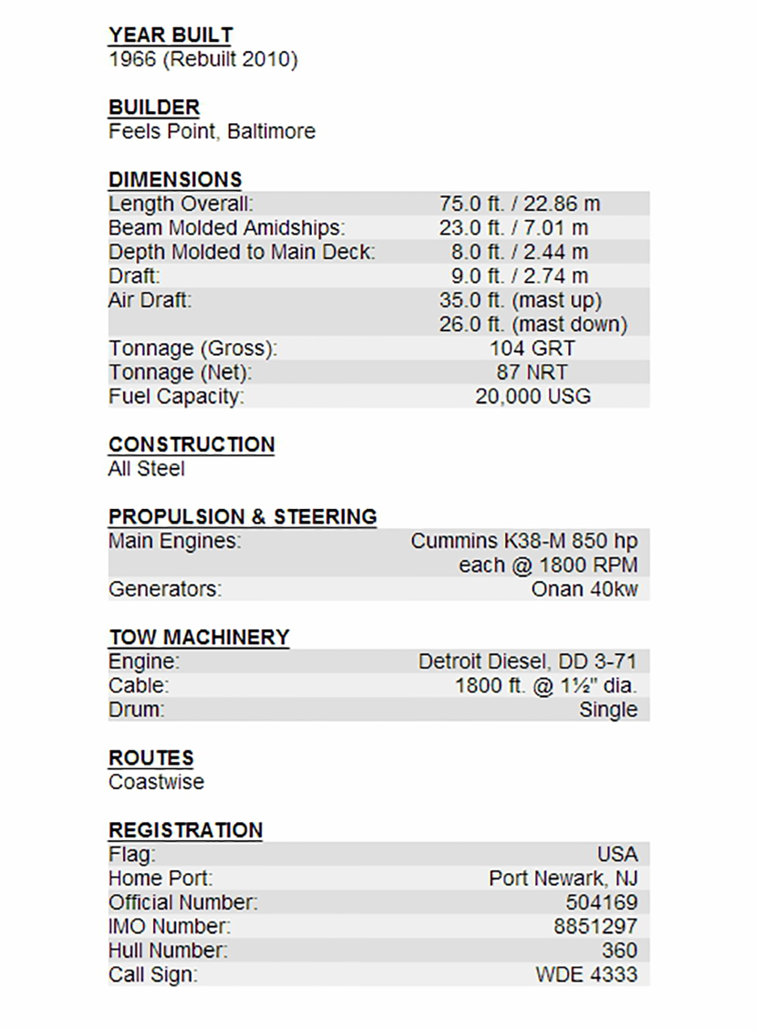 | 總長: | 22.86m | 發(fā)動機功率: | 2×850hp at 1800rpm |