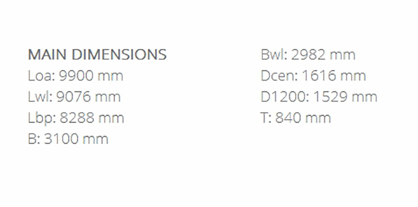 | 總長: | 9.9m | 型寬: | 3.1m |