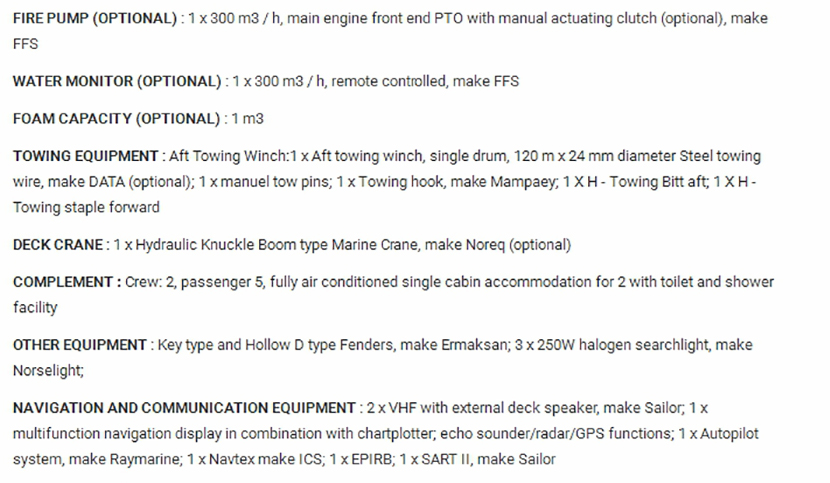 | 淡水: | 3m3 | 燃油容量: | 14m3 |