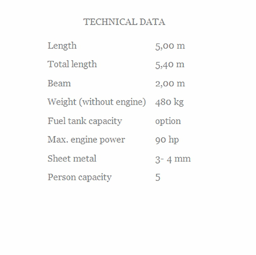 | 總長: | 5.40m | 最大乘員: | 5p |