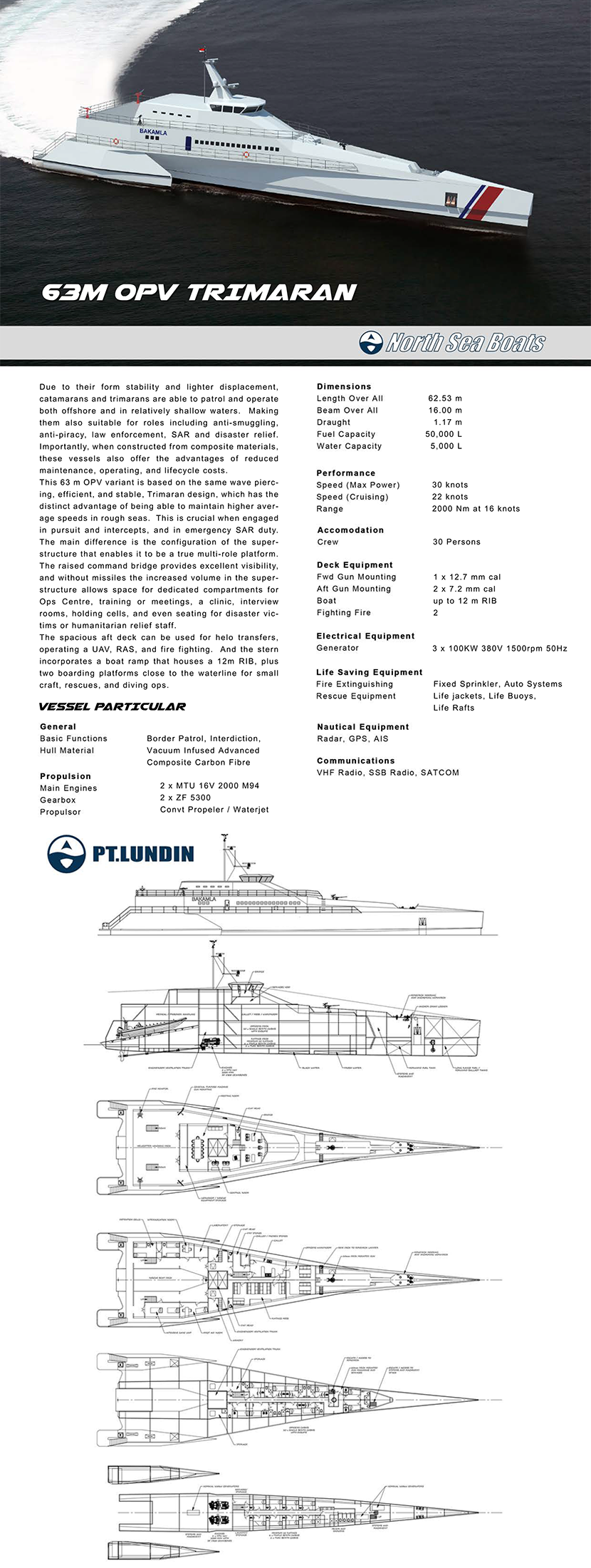 | 最大航速: | 30kn | 型寬: | 16.00m |