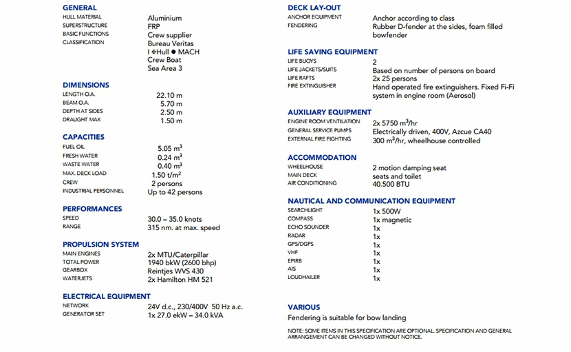 | 發(fā)電機組: | 2×Caterpilar /MTU | 船組人員: | 2 P |