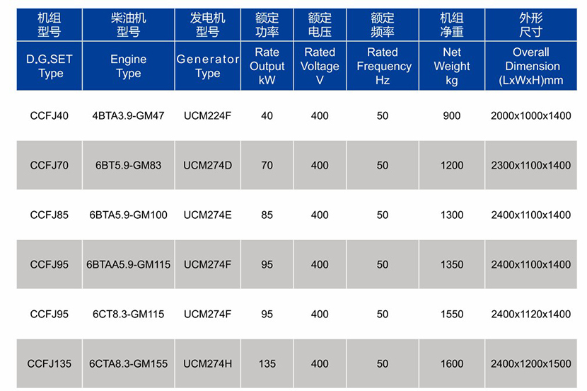 柴油機型號: 4BTA3.9-GM65 發(fā)電機型號: UCM224F