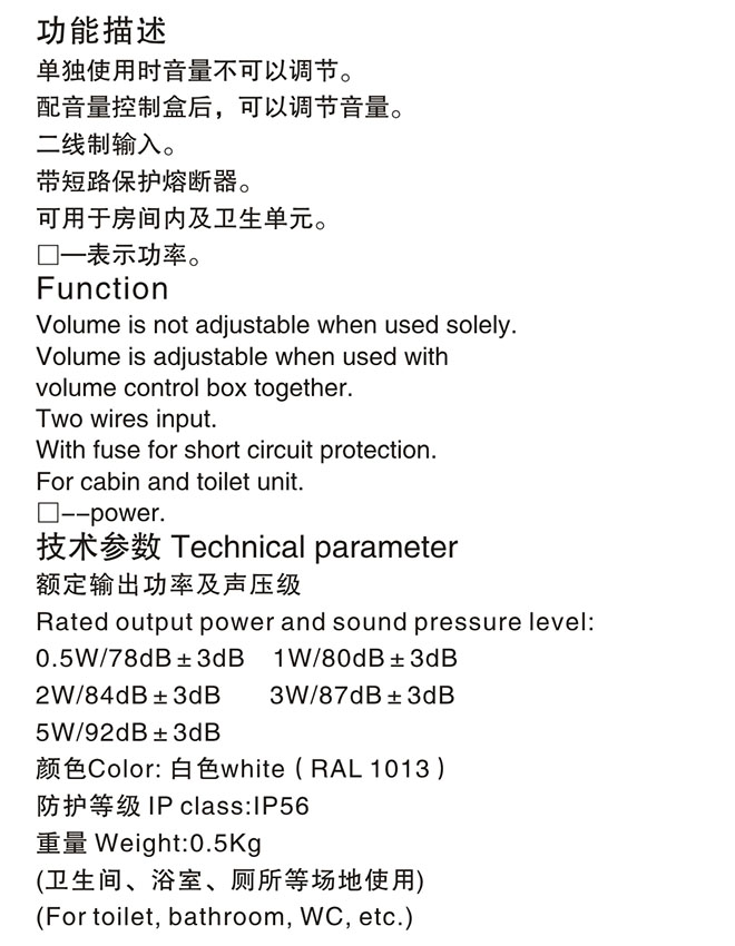 功率: 3W 聲壓等級: 87dB