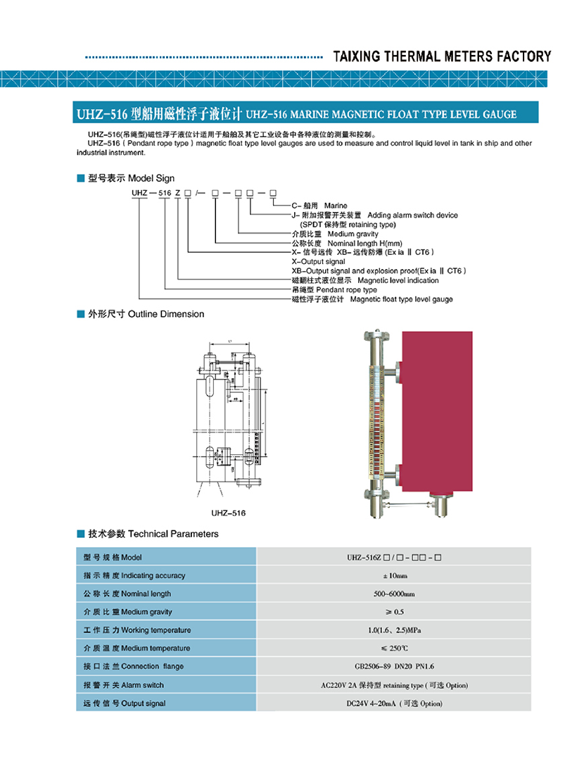 | UHZ-516型船用磁性浮子液位計(jì) | |||