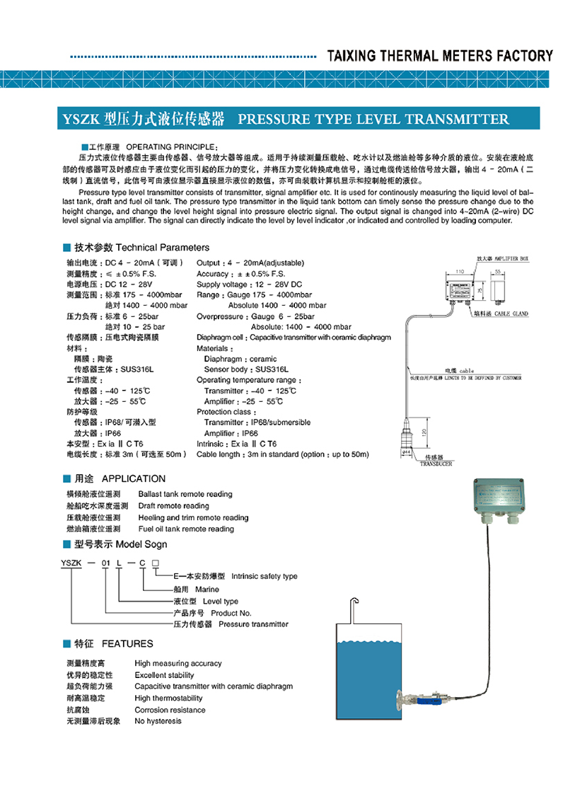 YSZK型壓力式液位傳感器