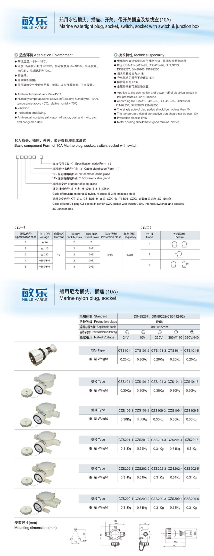 | 船用尼龍插頭(10A) | |||