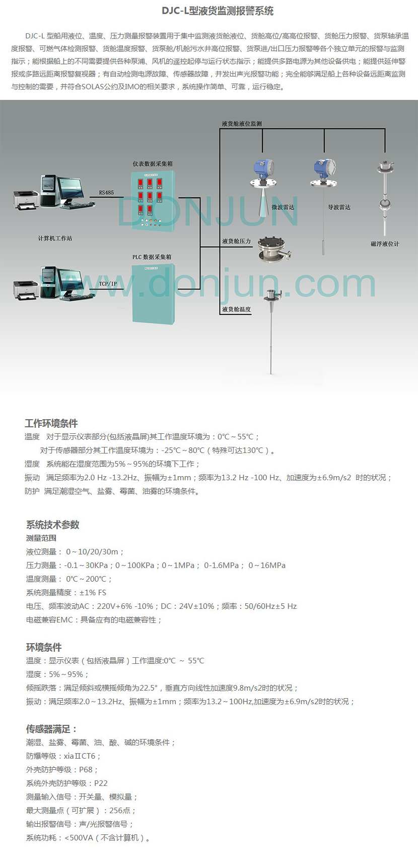 工作溫度: 0~55℃(顯示儀表部分);-25~80℃(特殊可達130℃)(傳感器部分) 防護等級: P68(外殼);P22(系統外殼)
