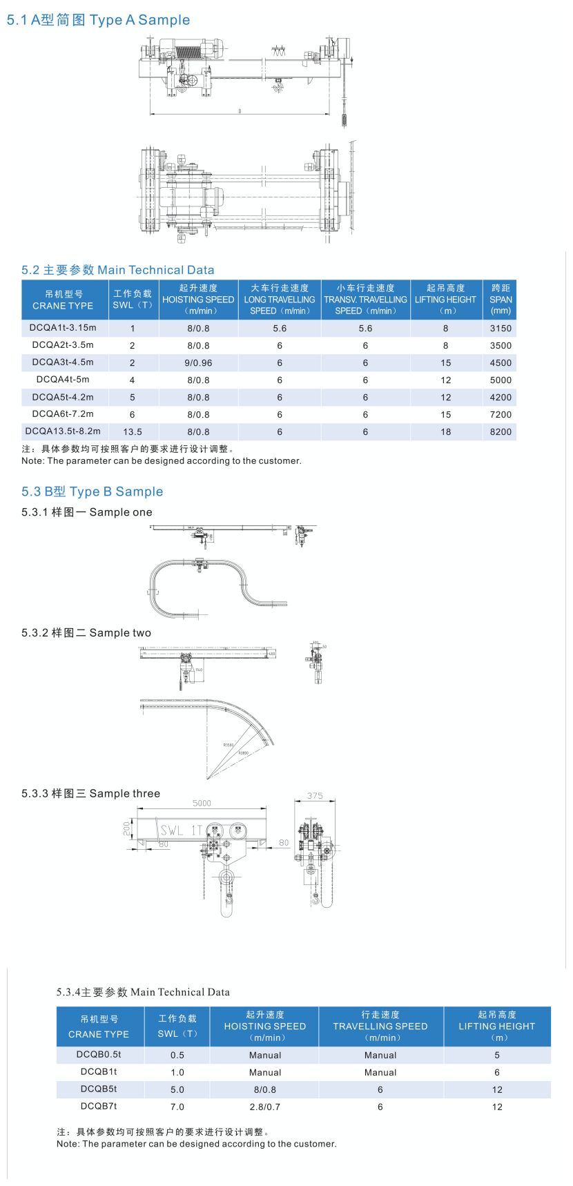 行走速度: 6m/min 起吊高度: 15m