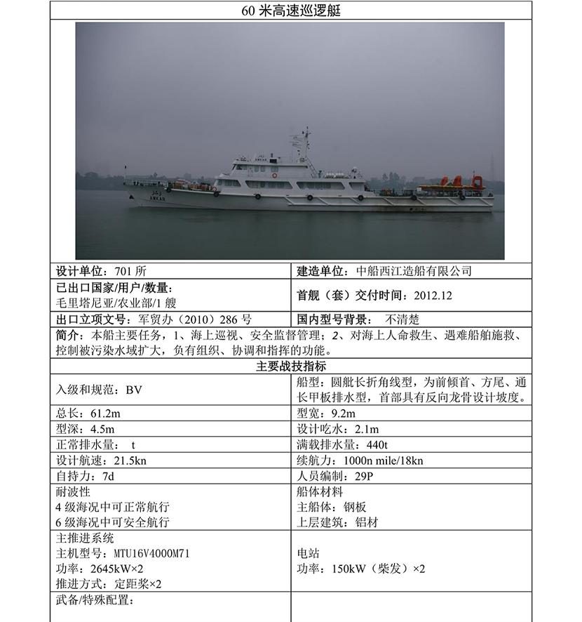 | 60米高速巡邏船 | |||