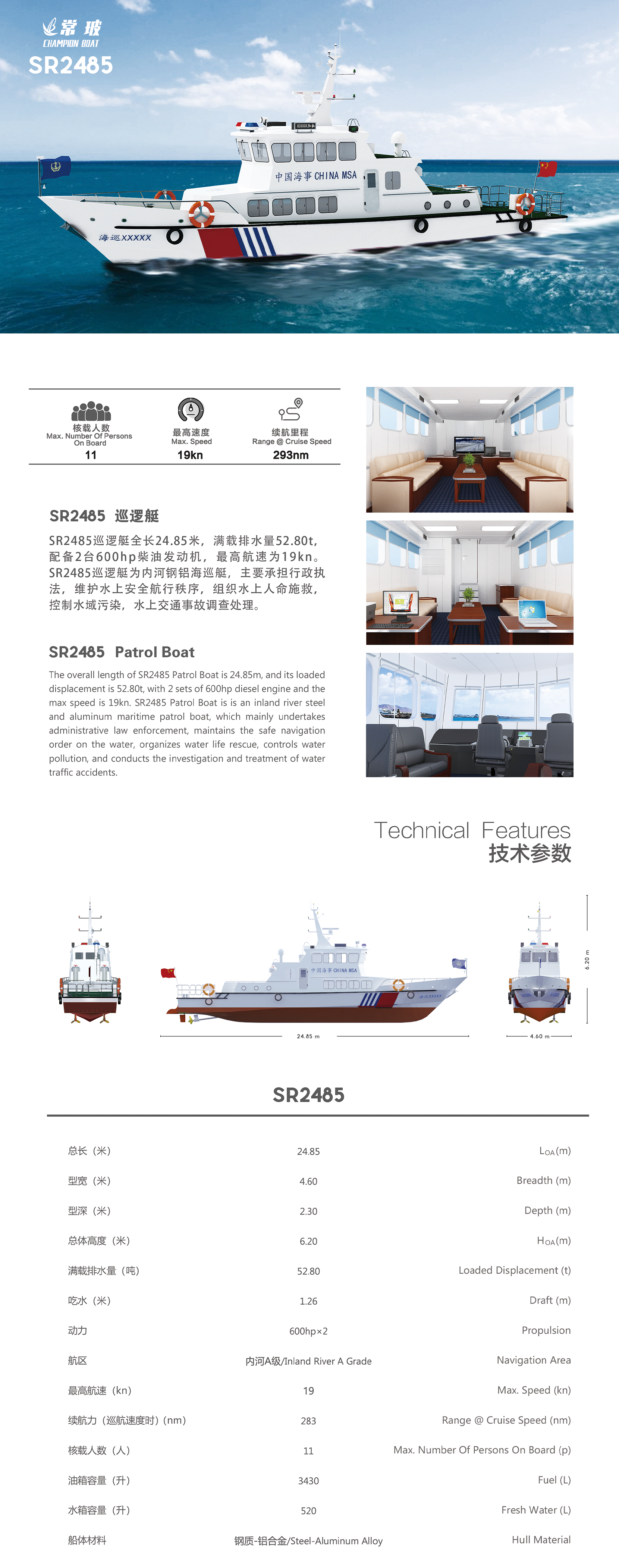 | 最大乘員: | 11人 | 船體材料: | 鋼制-鋁合金/Steel-Aluminum Alloy |