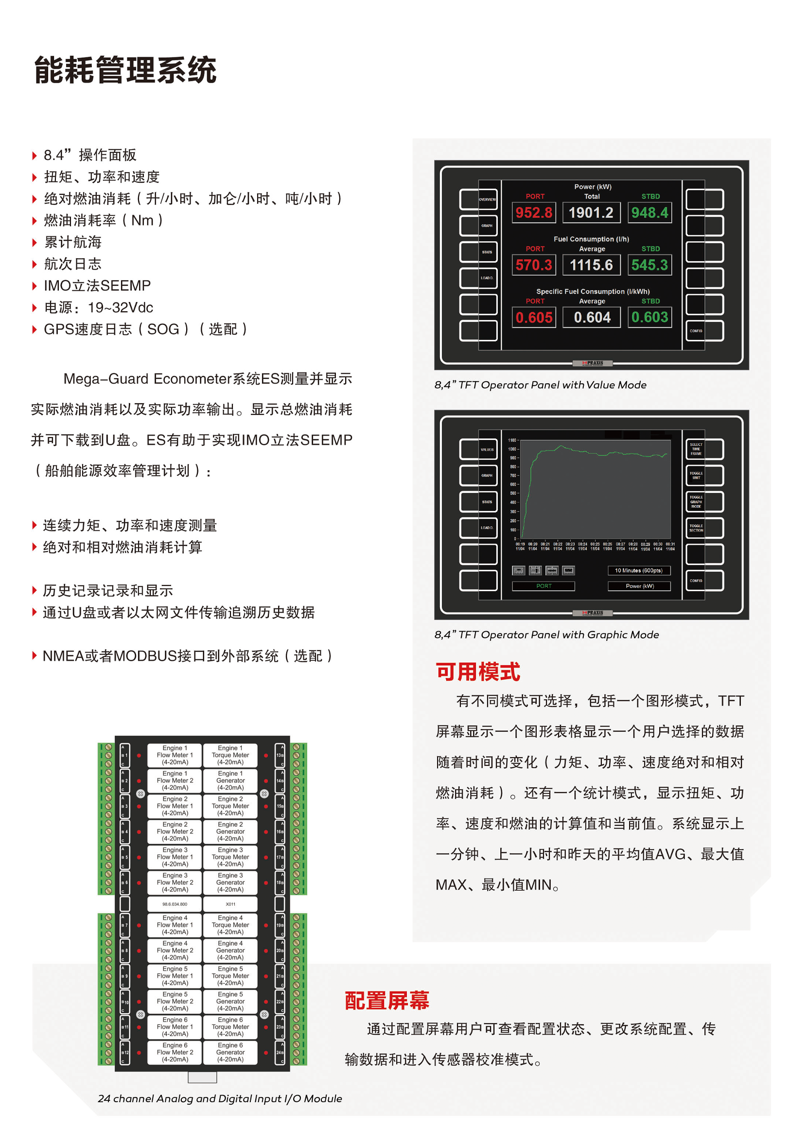 系統特點: 可將顯示的總燃油消耗下載到U盤;實現連續力矩、功率和速度測量 ;可進行絕對和相對燃油消耗計算,并記錄、顯示歷史數據,通過U盤或者以太網文件傳輸進行數據追溯;通過配置屏幕,用戶可查看配置狀態、更改系統配置、傳輸數據、進入傳感器校準模式