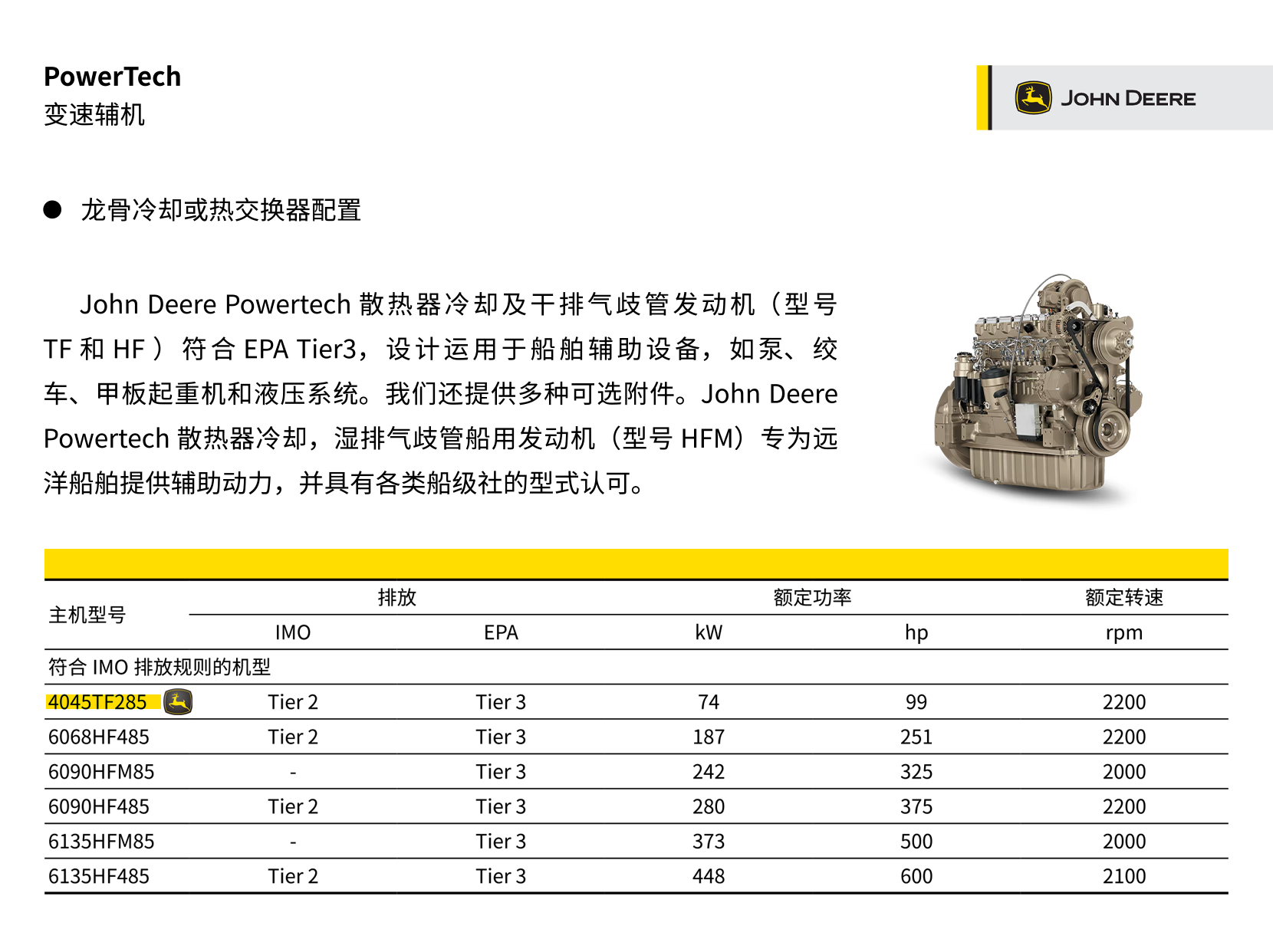 Power Tech 4.5L系列74KW船舶輔助設備變速發動機